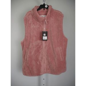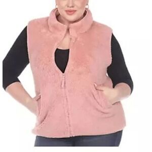White Mark Women's Plus Size Zip up sherpa vest Pink 1X