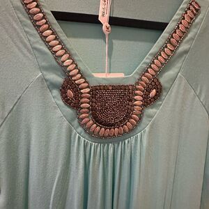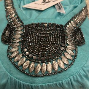 New beaded embellishment Top mint color Top Stylish top perfect for any casual outing. Enjoy comfort and elegance with this bead embellished perfect versatile piece. Career wear or casual