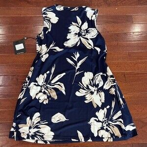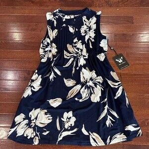 White Mark navy floral mini tunic dress with pockets size small NWT