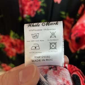 White Mark size 3X black with red roses sleeveless midi dress polyester/spandex