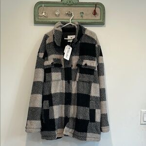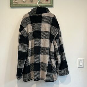White Mask faux fur Black and Gray Plaid Jacket shacket plus size xxxl 3XL women