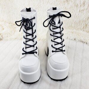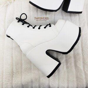 5" (12.7cm) Platform Goth Punk Ankle Boots In White Matte Leatherette