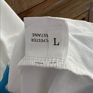 Elegant white maxi dress featuring blue trim. Perfect for summer occasions. Never worn.