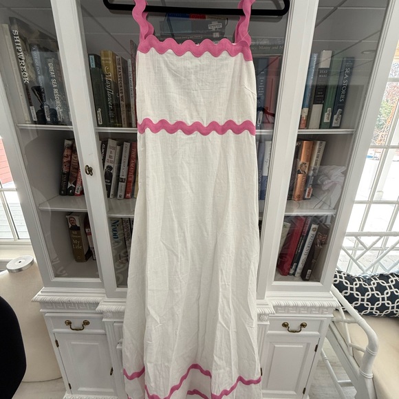 Gorgeous Billy J Daleyza maxi dress in white with pink ric rac trim—perfect for summer, vacation, or beach events 🌸