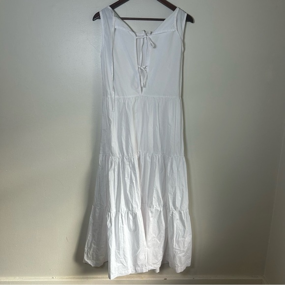 White Maxi Sundress with Tiered Skirt and Scoop Neck and Bow Tie Back