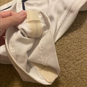 Mens M baseball pants. White with navy stripe and velcro at bottom. Some stains, see pictures.