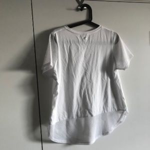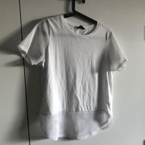 This cute white mesh shirt is half cotton half mesh! It is perfect for relaxing or going to the gym. This shirt is a size large but fits like a medium. The brand is Body by cotton on. Cotton On is a great Australian brand that focuses on basics and does them very well. The shirt has light stains on the bottom (pictured) that should come out in the wash.