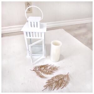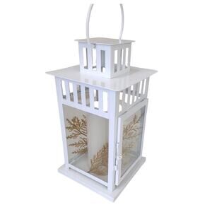 White Metal & Glass Lantern with Automated Candle Home Decor Holiday Lighting