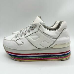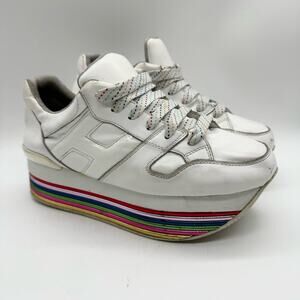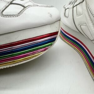White With Metallic Rainbow Platform Lace Up Sneaker! Perfect for Pride or Festivals!!