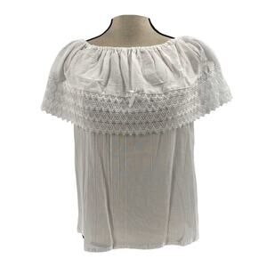 White Mexican Blouse with Lace Trim – Lightweight Chiffon-Style Top for Women