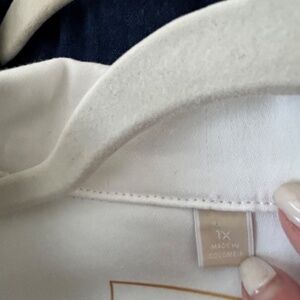 My recent weight loss is your gain. Beautiful Michael Kors lightweight white jean jacket in 1x--perfect for spring and summer. This jacket has gold button detail and is a great piece to wear with jeans, pants or dresses.