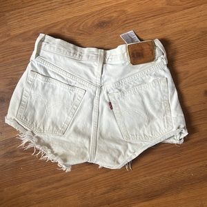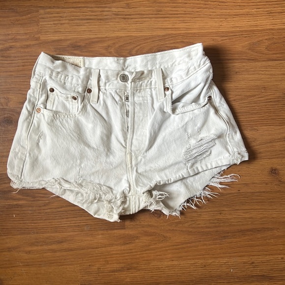 White Levi Shorts in perfect condition except for slight discoloring on Levis logo. Size 25. Would keep they just don't fit me anymore!
