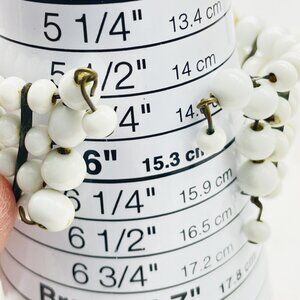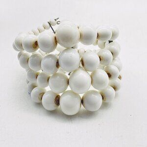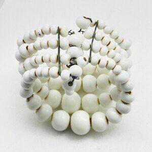 White Milk Glass Bead Cuff Bracelet Four Row Stretch Vintage Statement