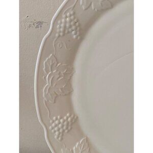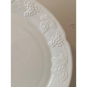 Vintage round serving platter made from white milk glass. Stunning grape and leaves design. Ideal for replacement or collection. Approximately 14 inches in size.