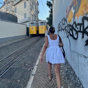 Good as new, white, mini dress. Great material, light for summer but not see-through.