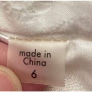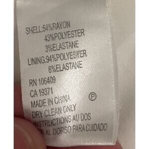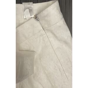 Elevate your wardrobe with these elegant white mini floral brocade dress pants. Perfect for any occasion, these pants feature a zip closure and a flat front. The pants are made of a combination of polyester, spandex, and rayon, making them both comfortable and durable. Not sure of brand. Pants are missing brand tag.
