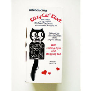 All Kit-Cat Klocks have the patented double animated feature of "Rolling eyes and wagging tail". Each Kit-Cat Klock comes with operating instructions, warranty & Kit Cat Club membership application.