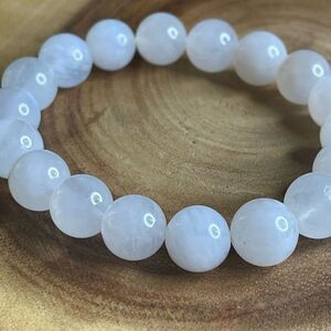 White Moonstone beaded bracelet 7” crystal healing beads 10mm blue flash