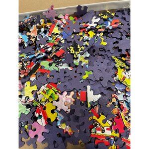 This 1000-piece puzzle features a vibrant collage of retro TV-themed lunch boxes designed by artist Charlie Girard.