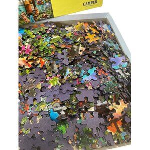 A 1000-piece jigsaw puzzle featuring a vibrant camping scene, designed with larger pieces for ease of assembly. Includes a bonus poster for reference.