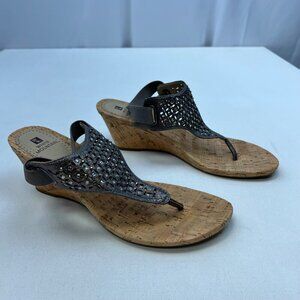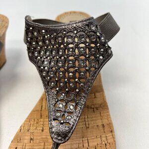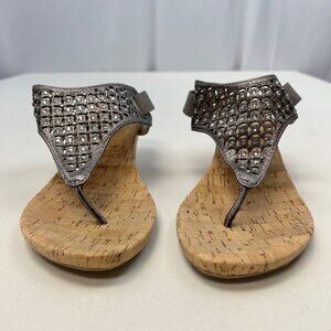 White Mountain Arnette Wedge Heel Sandals Gray/Rhinestone Size 10M Ankle Strap