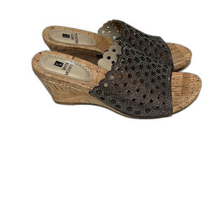 White Mountain Atlie Open Toe Cork Heel Wedge Metallic Brown 7M NEW WITHOUT BOX