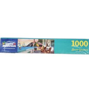New Sealed White Mountain Beach Vacation 1000 Piece Puzzle #1458. Completed puzzle measures 24in x 30in.