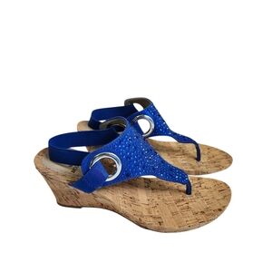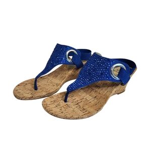 White Mountain Blue Rhinestone Wedge Sandals Sz 6.5 M
