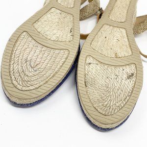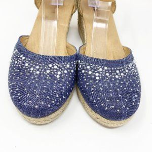 White Mountain Women's Blue Silver Studded Woven Toe Jute Wedge Heel