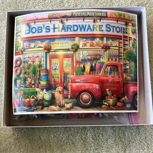 Dive into the colorful world of Bob's Hardware Store with this engaging puzzle. Features a lively scene with a classic red truck and vibrant storefront. Perfect for puzzle lovers.