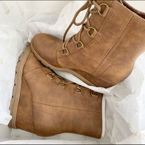 White Mountain takes fashion to the next level featuring our Nellie bootie with a covered wedge heel and chunky lug platform.