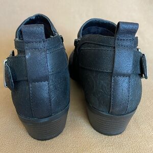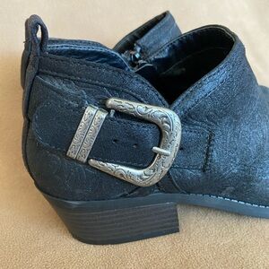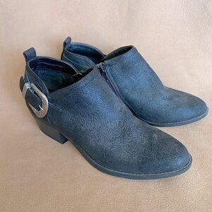 White Mountain Boots Womens Davenport Ankle Bootie Black with subtle pattern and silver Buckle