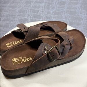 White Mountain Foot Beds Braided Leather Slip On Brown leather Sandals Sz 10