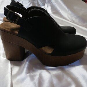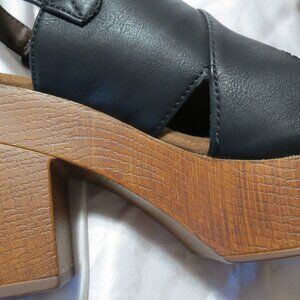 Sexy, fun high platform heel sandals! Great to wear with pants/jeans, mini skirt or dress. These pair of shoes are pre-owned, but gently and hardly worn. They’re in very good condition, like new. Made made materials. Size 8M. The heel is 4”.