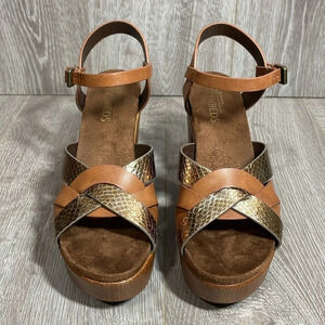 White Mountain Footbeds Achiever Platform Heel Sandal Dark Tan Metallic 7M