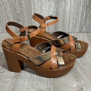 White Mountain Footbeds Achiever Platform Heel Sandal Dark Tan Metallic in size 7M. Excellent preowned condition, worn one time. The Achiever clog sandal has a strappy woven design, a simple back quarter strap with buckle closure, the contoured footbed sits above a faux wood heel for maximum comfort. Please see photos for approximate measurements and details. Item may show difference in color based upon photography and perception. Photos are part of the description, as everyone’s level of condition may vary. From smoke free and pet free home. All packages are shipped the same or next business day.