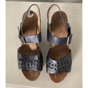 White Mountain Footbeds Altheda Black Sz 9M Block Wood Heels Y2K Sandals Shoes