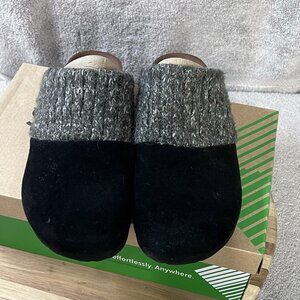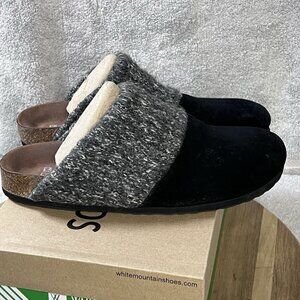 White Mountain Footbeds Clog Slip On Women’s Sz 8M Black Suede Sweater Trim