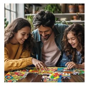 Dive into a colorful world of nostalgia with the White Mountain Vibrant Games Puzzle. This engaging puzzle showcases a collage of classic board game designs, featuring iconic titles like Candy Land, Monopoly, and Operation. Made once.
