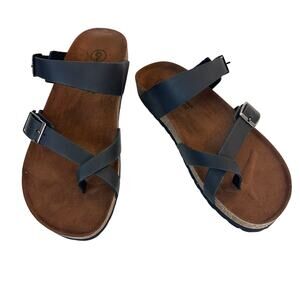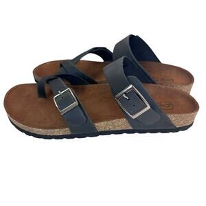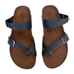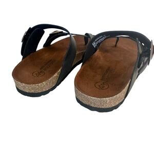 White Mountain Gracie Sandals Black Comfort Footbed Buckle Strap Slide Size 9