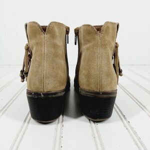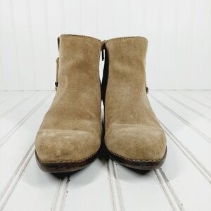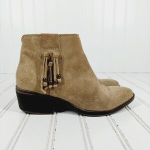 White Mountain Havana Taupe Tan Suede Leather Side Fringe Ankle Boots E990
