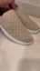 Rhinestone embellished slip-on sneaker by White Mountain Shoes. This sneaker features a knit stretchy upper. Sparkling rhinestones add dash of glamour to any outfit. You'll love how cute the bling-embellished stretch knit fabric is and your feet will love how walkable and supportive they are. This is what you need for a quick run to the store, a fun day trip and anywhere in between. These embellishments dress up this sneaker in a fun trendy way. The stretchy fabric upper makes this sneaker breathable and flexible whether you're wearing socks or not. The sneakers' insole features enough support and cushioning to feel like you are walking on air while the slip-resistant bottom also gives great stability when walking. Fitting as comfortably as a slipper but with a durable bottom to wear outside, these sneakers are great for travel. Add this stylish sneaker to your wardrobe for any occasion you want to have comfortable footwear. Light weight comfort walking shoe with textile knit upper slip-on stretch knit design for flexible, snug fit comfort cushion insole. There is some staining on the insole from getting wet but they are still in great condition. Size 7