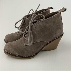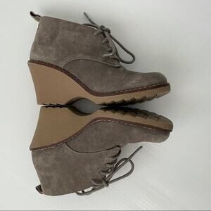 White Mountain Lambert wedge lace-up booties grey suede leather