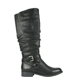 White Mountain Liona Tall Knee High Boot Black Burnished Smooth
