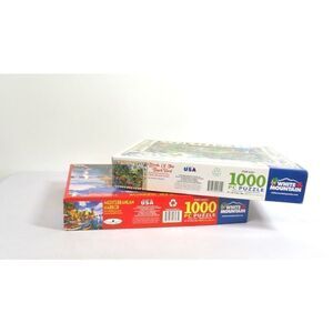 White Mountain Puzzles Birds of the Back Yard & Mediterranean Harbor 1000 PC