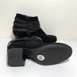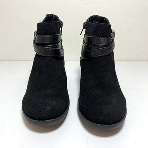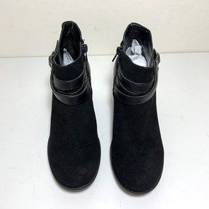 NEW White Mountain Black Rhone Leather Strap Suede Buckle Booties Heel Boots Size 6.5