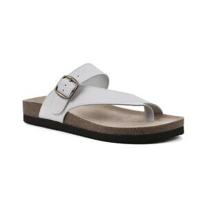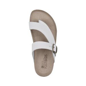 The classic Carly leather thong sandal by White Mountain footbeds features a molded suedette footbed with an adjustable buckle. The contoured footbed with heel cup provides ultimate comfort for you to wear all day everyday. Soft and stylish these comfort sandals are your summer wardrobe must have.