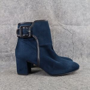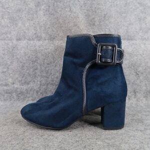 Used White Mountain Shoes Womens 6 Booties Fashion Blue Block Heel Career Classic Zip