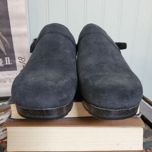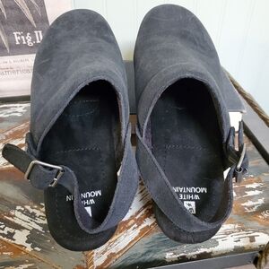 White Mountain Slingback Clog Suede Black Faux Wooden Heel