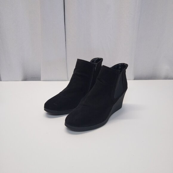 White Mountain Solange Black Wedge Chelsea Boots Size 12M Expandable Side & Zip